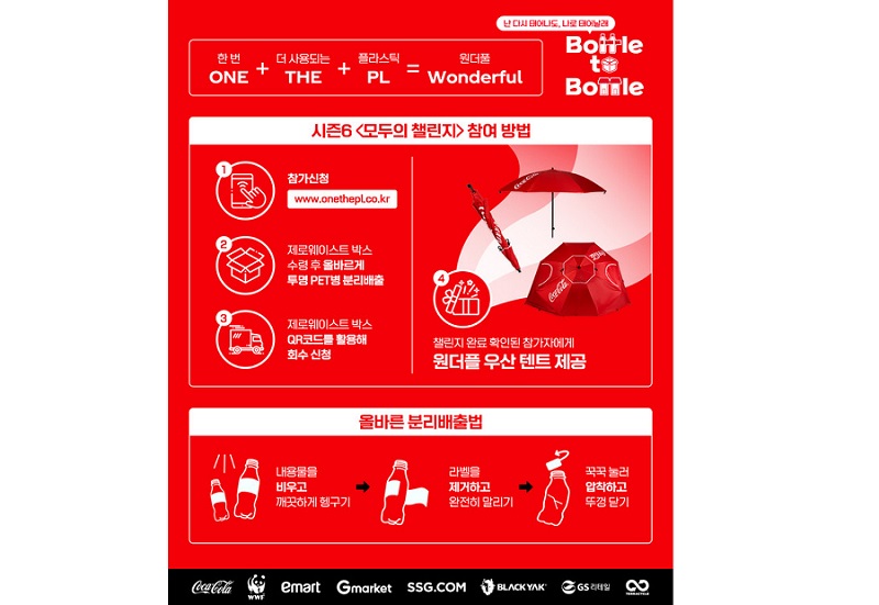 코카콜라는 자원순환의 가치를 담은 ESG 캠페인 ‘한 번 더 사용되는 플라스틱: 원더플 캠페인’을 통해 지속가능성과 책임 있는 소비라는 브랜드 가치를 전달하고 있다. ‘원더플 캠페인’은 투명 음료 페트병을 분리 배출하고 이를 다시 새 페트병으로 재활용하는 ‘보틀투보틀(Bottle to Bottle)’ 순환경제를 소비자가 직접 체험할 수 있도록 기획된 캠페인이다. 소비자는 ‘제로 웨이스트 박스’를 통해 투명 페트병을 모아 회수 신청을 하고, 수거된 자원이 재활용돼 다시 제품으로 탄생하는 과정을 경험할 수 있다. 참여자에게는 업사이클 굿즈 등의 리워드가 제공된다.