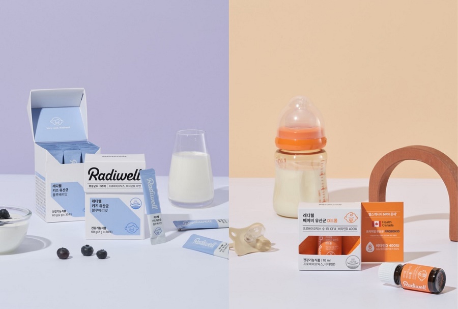 키즈 유산균 2종은 분말 형태의 '래디웰 키즈 유산균 블루베리맛'과 영유아를 위한 액상 형태의 '베이비 유산균 D드롭'으로 구성됐다.