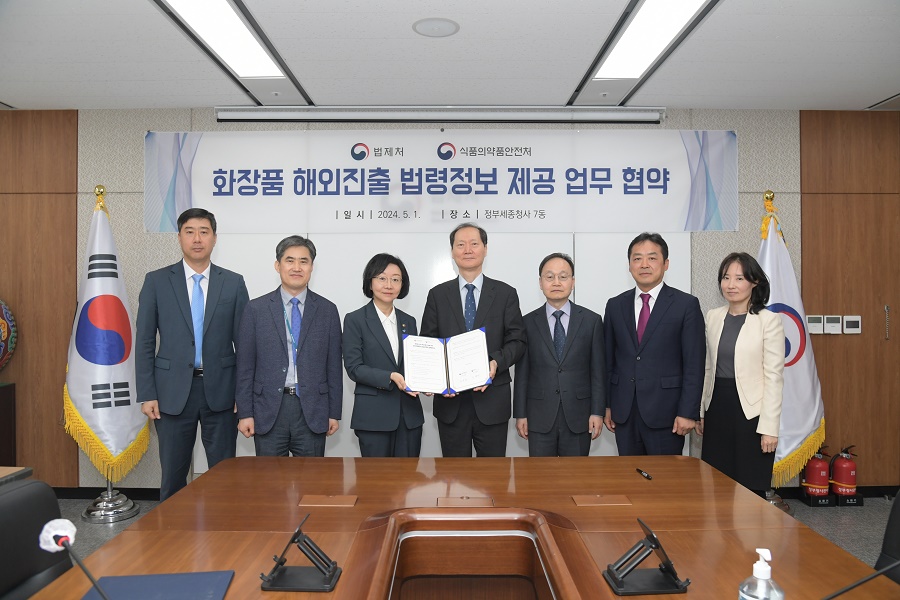 식품의약품안전처(처장 오유경, 이하 식약처)와 법제처(처장 이완규)가 5월 1일 정부세종청사에서 ‘화장품 해외진출 법령정보 제공 협력 업무 협약’을 체결했다.