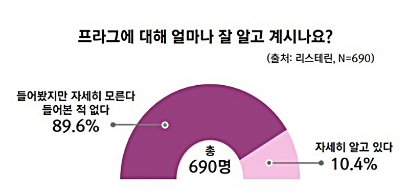 각종 구강 질환의 원인이 되는 구강 관련 용어 ‘프라그’에 대해서는 응답자의 대부분인 89.6%가 들어봤지만 자세히 모르거나, 들어본 적 없다고 답해, ‘충치’, ‘치석’ 등의 용어 대비 ‘프라그’에 대한 이해가 전반적으로 부족한 것을 알 수 있었다.