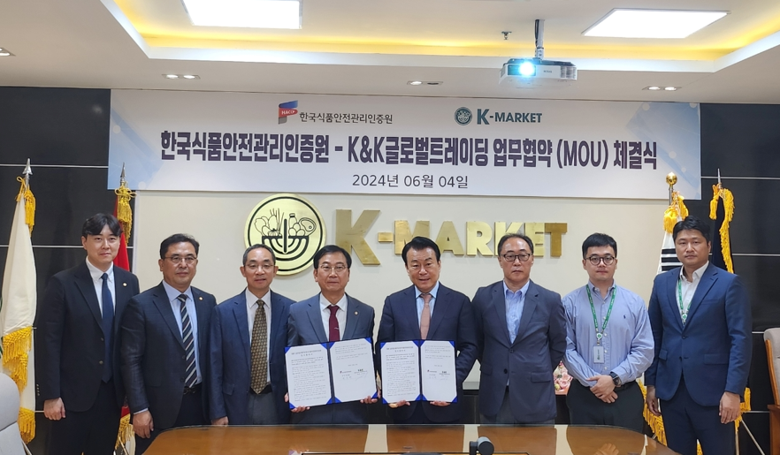 한국식품안전관리인증원(원장 한상배, 해썹인증원)과 K&K글로벌트레이딩(회장 고상구, K&K트레이딩)은 6월 4일 베트남 하노이 K&K트레이딩 본사에서 식품안전이 담보된 국내 식품의 해외 진출 확대를 위한 업무협약(MOU)을 체결했다.