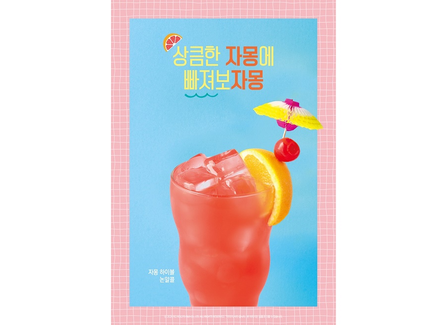 ‘자몽 하이볼 논알콜’은 식욕을 자극하는 선홍빛 컬러의 음료 위 오렌지와 체리를 토핑하고, 칵테일 우산을 토핑해 여름 휴양지가 떠오르는 비주얼로 눈길을 끈다. 상큼하면서도 쌉싸름한 자몽이 향긋한 블랙 티와 만나 산뜻함을 선사하고, 위스키향 시럽으로 풍미를 더했다.