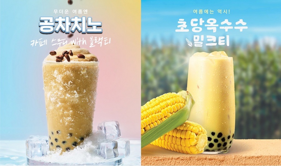 ‘공차치노-카페 스무디 with 블랙티’, ‘초당 옥수수 밀크티+펄’