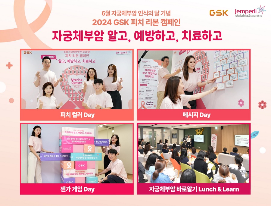 한국GSK(한국법인 대표이사 마우리치오 보르가타)는 6월 자궁체부암 인식의 달(Uterine Cancer Awareness Month)을 맞아 ‘피치 리본 캠페인: 자궁체부암 알고, 예방하고, 치료하고!’를 진행했다고 6월 27일 밝혔다.