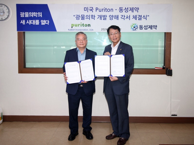 이번 협약은 각 사가 보유한 연구 기술과 노하우를 바탕으로 새로운 융합 제품 개발과 글로벌 시장 확대를 위한 취지에서 진행됐다. 동성제약과 업무 협약을 체결한 카데시 인코퍼레이션은 20여 년의 연구를 통해 세계 최초로 100% 천연 미네랄 신물질 ‘퓨리톤(Puriton)’을 개발해 의약품 연구와 제품 개발에 힘써온 기업이다.