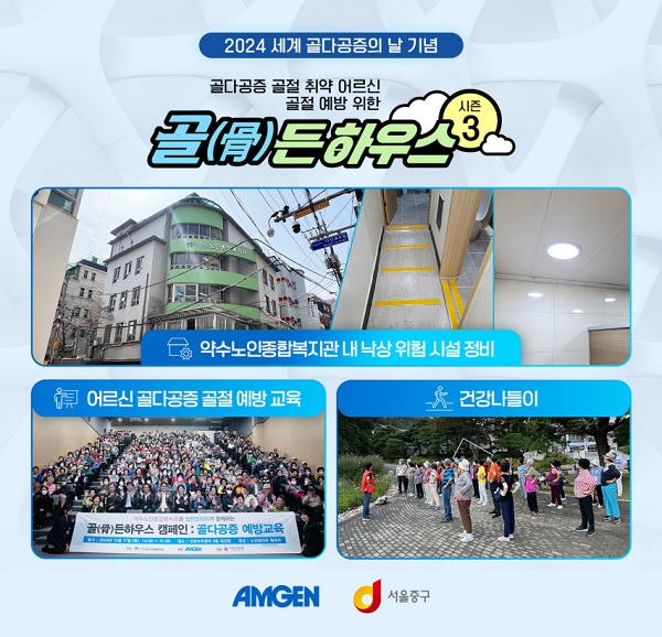 골(骨)든하우스 캠페인은 암젠코리아 ESG 실천의 일환으로, 지난 2021년 서울시 중구청, 서울사회복지공동모금회와 업무협약을 맺고 지난 3년간 중구 거주 어르신들의 골다공증 골절 예방을 위해 자택 및 고령 인구 이용률이 높은 공공시설 정비 및 교육 등 다양한 활동을 진행해 왔다.
