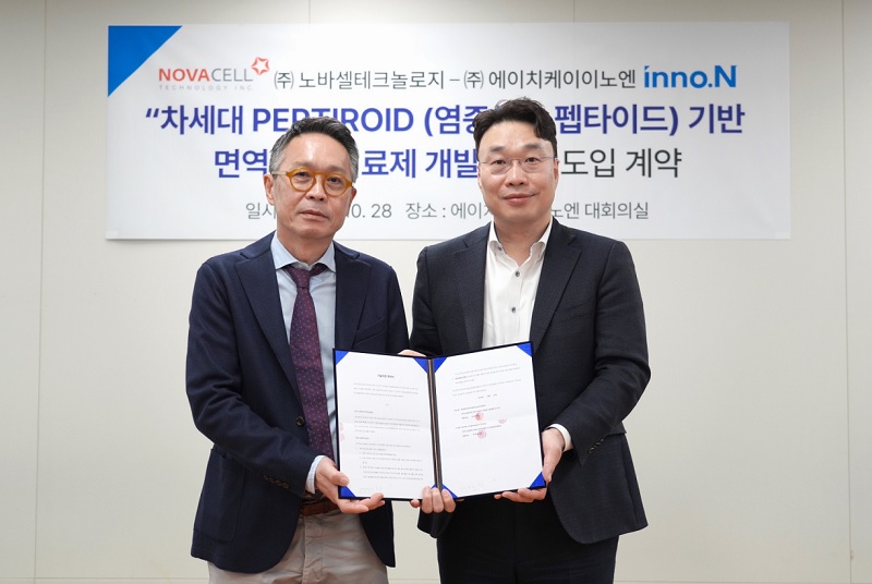 제약바이오기업 HK이노엔(대표 곽달원)은 펩타이드 면역치료제 개발 전문 기업인 노바셀테크놀로지(대표 이태훈)로부터 면역질환 신약 후보물질을 도입했다고 밝혔다.