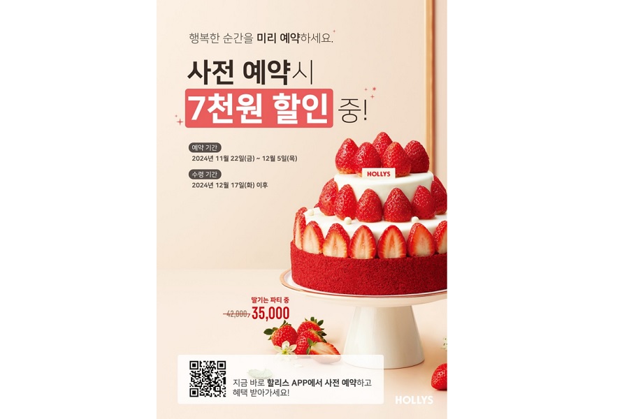 할리스 관계자는 “소중한 사람들과 함께 행복한 연말 파티를 계획 중인 고객들을 위해 생딸기를 듬뿍 얹은 홀리데이 홀케이크를 출시하고, 사전 예약 프로모션을 진행한다”며, “할리스 앱으로 간편하게 예약하시고, 소중한 사람들과 함께하는 연말을 더욱 풍성하고 달콤하게 보내실 수 있길 바란다”고 말했다.
