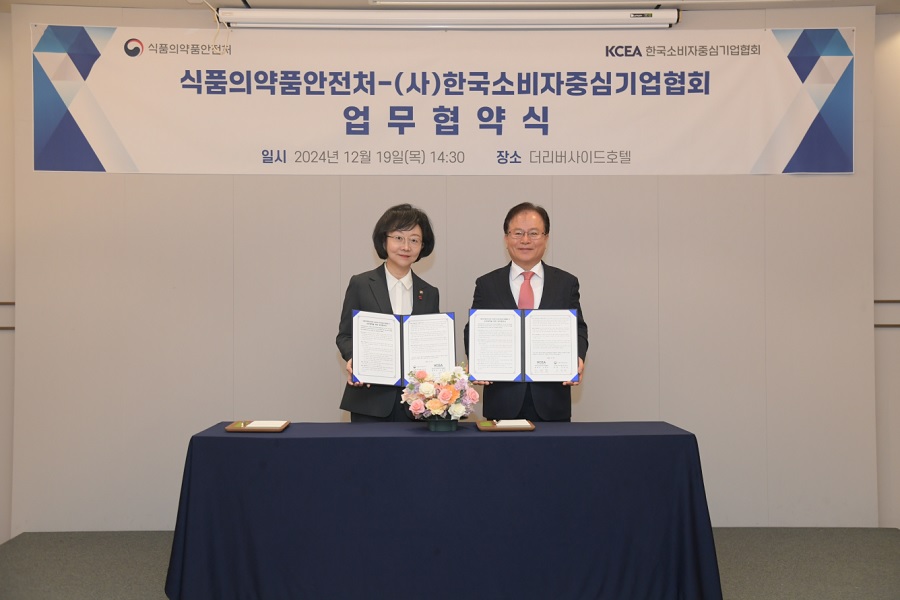 식품의약품안전처(처장 오유경, 이하 식약처)는 12월 19일 소비자 중심의 식품·의약품 안전관리 체계 확립을 위해 한국소비자중심기업협회(회장 조항목, 이하 소비자중심기업협회)와 업무협약을 체결했다고 밝혔다.