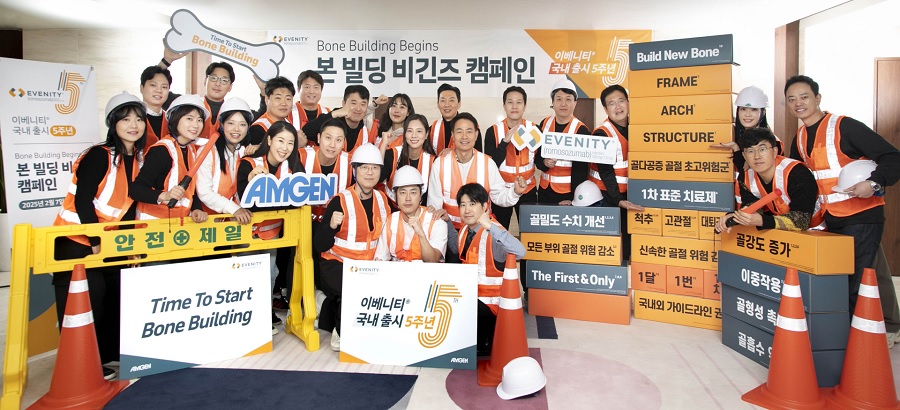 암젠코리아(대표: 신수희)는 지난 2월 7일 골다공증 골절 초고위험군을 위한 1차 치료제로 자리 잡은 ‘이베니티(성분명: 로모소주맙)’의 국내 출시 5주년을 축하하고, 골다공증 골절 위험 감소 및 치료 중요성에 대한 인식을 높이기 위해 ‘본 빌딩 비긴즈(Bone Building Begins)’ 사내 캠페인을 진행했다고 2월 10일 밝혔다.
