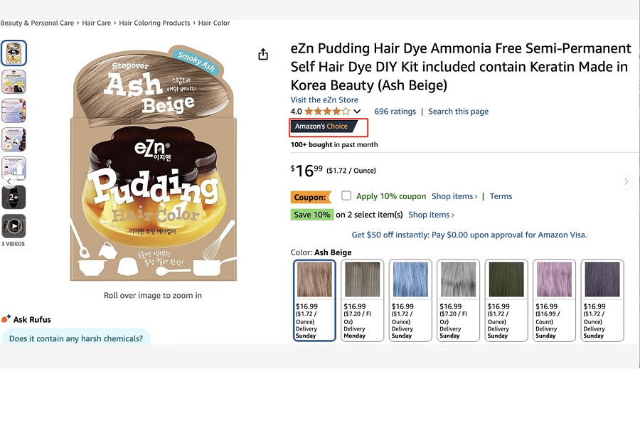이번에 '아마존 오버롤 픽’으로 선정된 이지엔 '푸딩 헤어컬러'는 쫀쫀하고 탱탱한 푸딩 타입의 제형과 매 시즌별 트렌드를 선도하는 헤어 컬러로 셀프 염색 시장에서 장시간 많은 사랑을 받아온 제품이다. 현재 미국 아마존에서는 탈색을 전제로 하는 염색 컬러가 높은 인기를 얻고 있다. 그리고 지난 11월에는 이지엔의 '슈퍼리치 크림 블리치' 제품이 아마존 블리치 카테고리에서 28위에 진입하는 등 괄목할 만한 성과를 거두고 있다.