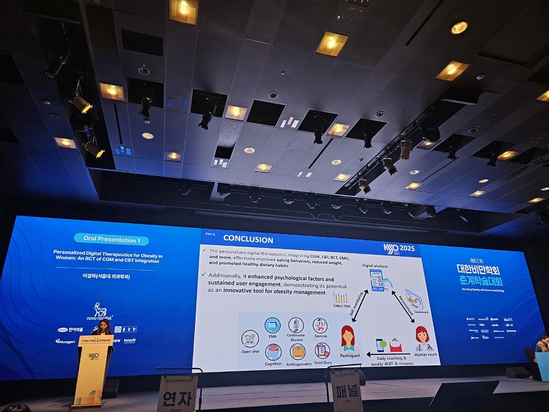디지털 헬스케어 기업 닥터다이어리(Dr. Diary)는 최근 개최된 대한비만학회 춘계학술대회에서 서울대학교병원 최형진 교수 연구팀과의 공동 연구 결과를 발표하며, 기존의 체중 감량 중심 치료법에서 벗어나 대사 건강 중심의 새로운 비만 치료법을 제시했다. 특히 연속혈당측정기(CGM)와 인지행동치료(CBT)를 결합한 개인 맞춤형 비만 관리 솔루션(글루어트)의 효과를 공개해 큰 주목을 받았다.