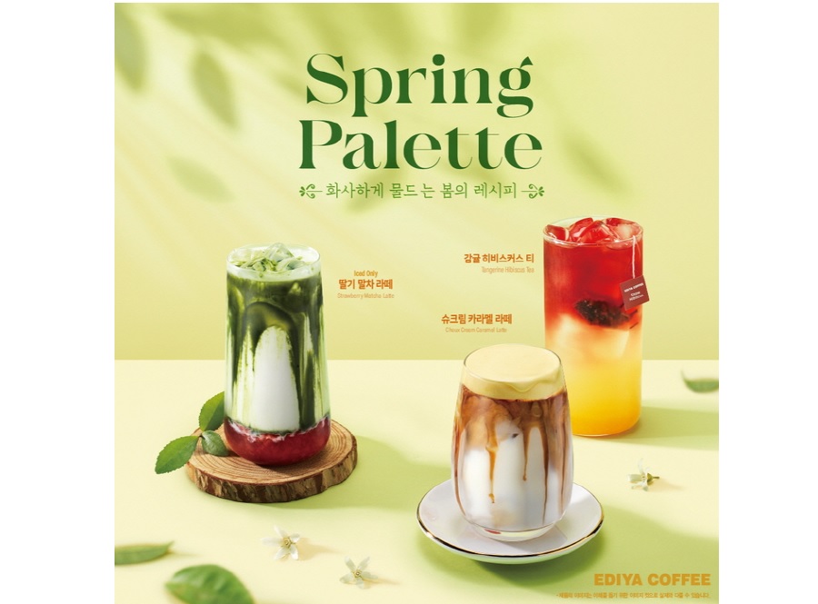 이디야커피는 스프링 팔레트를 컨셉으로 다채로운 봄 메뉴를 선보였다. ‘감귤 히비스커스 티’는 감귤과 레몬을 활용한 노란색과 히비스커스의 붉은색이 어우러져 화려한 색감을 자랑한다. 과일의 상큼함과 허브의 깊은 풍미가 어우러져 새콤달콤한 맛이 특징이다. 이 외에도 봄을 연상시키는 색감과 원재료를 활용해 봄의 생동감을 느낄 수 있는 ‘딸기 말차 라떼’도 만나볼 수 있다.