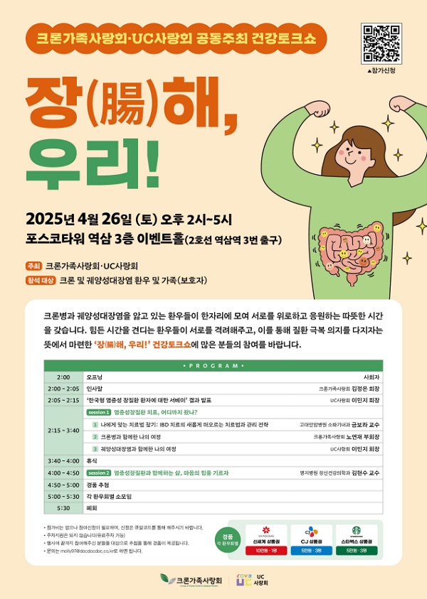 크론가족사랑회·UC사랑회 공동 건강토크쇼 ‘장(腸)해, 우리!’ 개최 (2025-04-09)