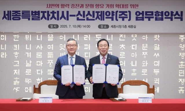 신신제약(대표 이병기)은 지난 7월 10일 세종특별자치시청 5층 세종실에서 세종특별자치시(시장 최민호)와 시민 건강 증진 및 문화 향유 기회 확대를 위한 업무협약(MOU)을 체결했다.