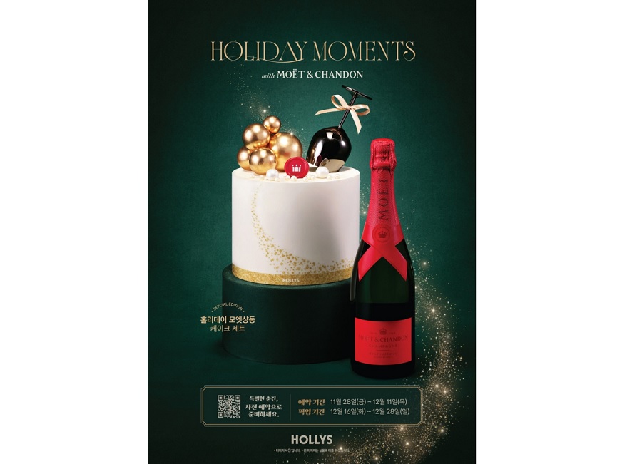 라이프스타일 브랜드 할리스는 시즌 한정으로 샴페인을 닮은 ‘홀리데이 샴페인 골드 케이크’를 선보였다. ‘샴페인처럼 반짝이는 홀리데이’를 컨셉으로 떠오르는 금빛 디테일이 연말 파티 분위기를 끌어올린다. 잔부터 스파클링이 떠오르는 버블 오브제까지, 샴페인을 터트리는 순간의 행복과 기쁨을 시각적으로 형상화했다. 깊고 짙은 풍미의 블랙 벨벳 시트에 크림치즈와 체리 콩포트를 더해 샴페인과 잘 어울리는 프리미엄 케이크를 완성했다. 특히, 케이크와 함께 페어링하기 좋은 프랑스 대표 샴페인 브랜드 ‘모엣 & 샹동’의 임페리얼 EOY 에디션을 포함한 ‘홀리데이 모엣샹동 케이크 세트’로도 만나볼 수 있어 파티의 순간을 더욱 특별하게 만들어준다.