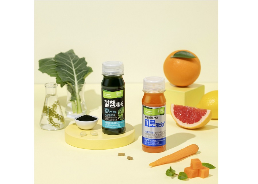풀무원헬스케어는 혈행개선에 도움을 줄 수 있는 식물성 알티지(r-TG) 오메가3와 녹즙을 한 병에 담은 ‘혈행개선&식물성 오메가3와 케일’(캡슐: 건강기능식품 450mg 2캡슐, 액상: 일반식품 130mL), 스트레스로 인한 피로개선에 도움을 줄 수 있는 건강기능식품과 타우린 함유 유산균 음료를 결합한 ‘식물성유산균 피로개선엔’(정제: 건강기능식품 350mg 2정, 액상: 일반식품 130mL)을 출시했다고 밝혔다.
